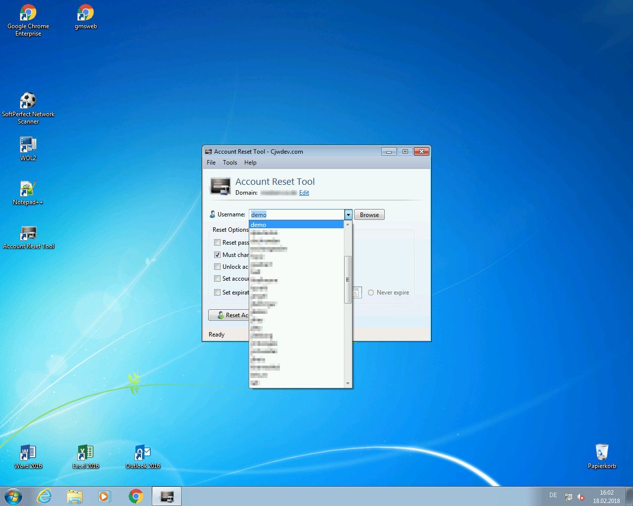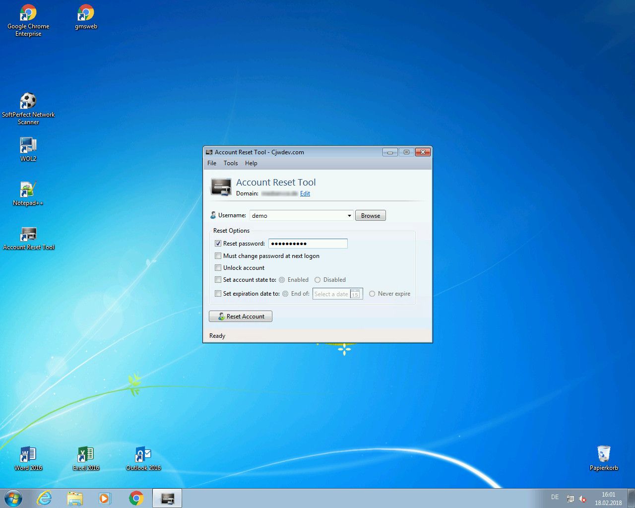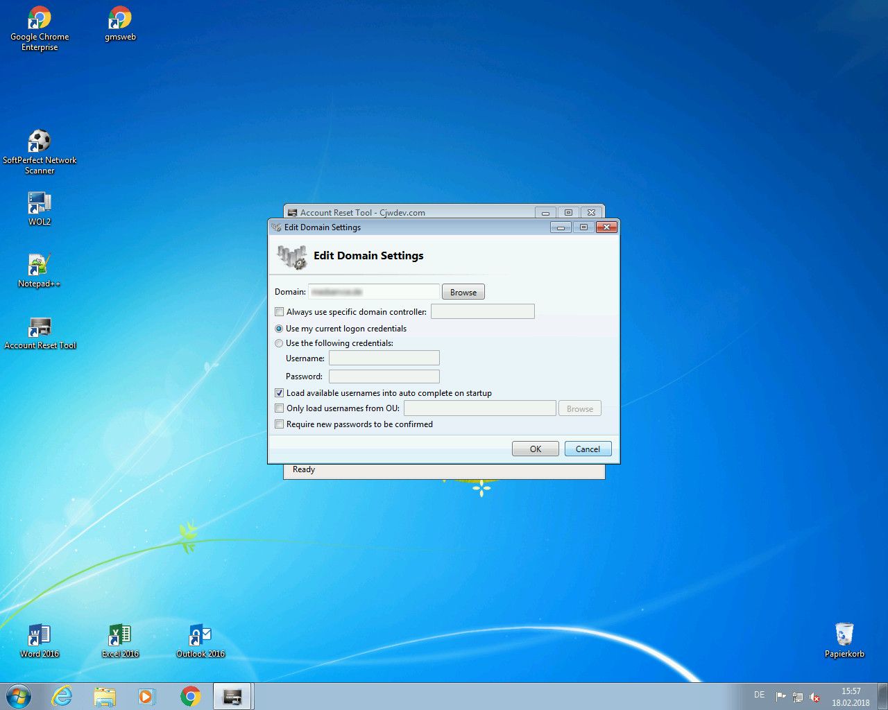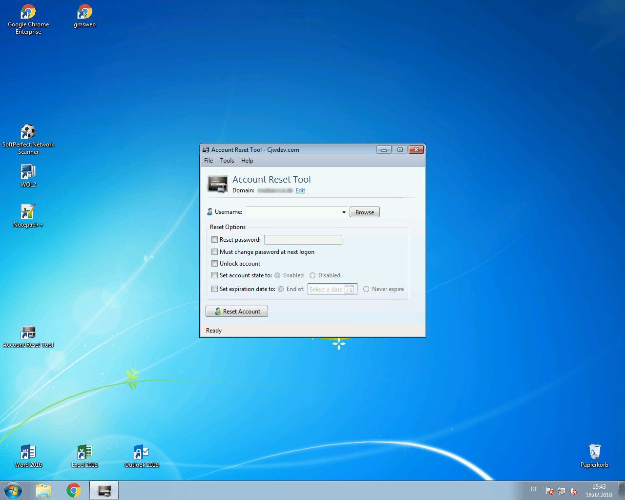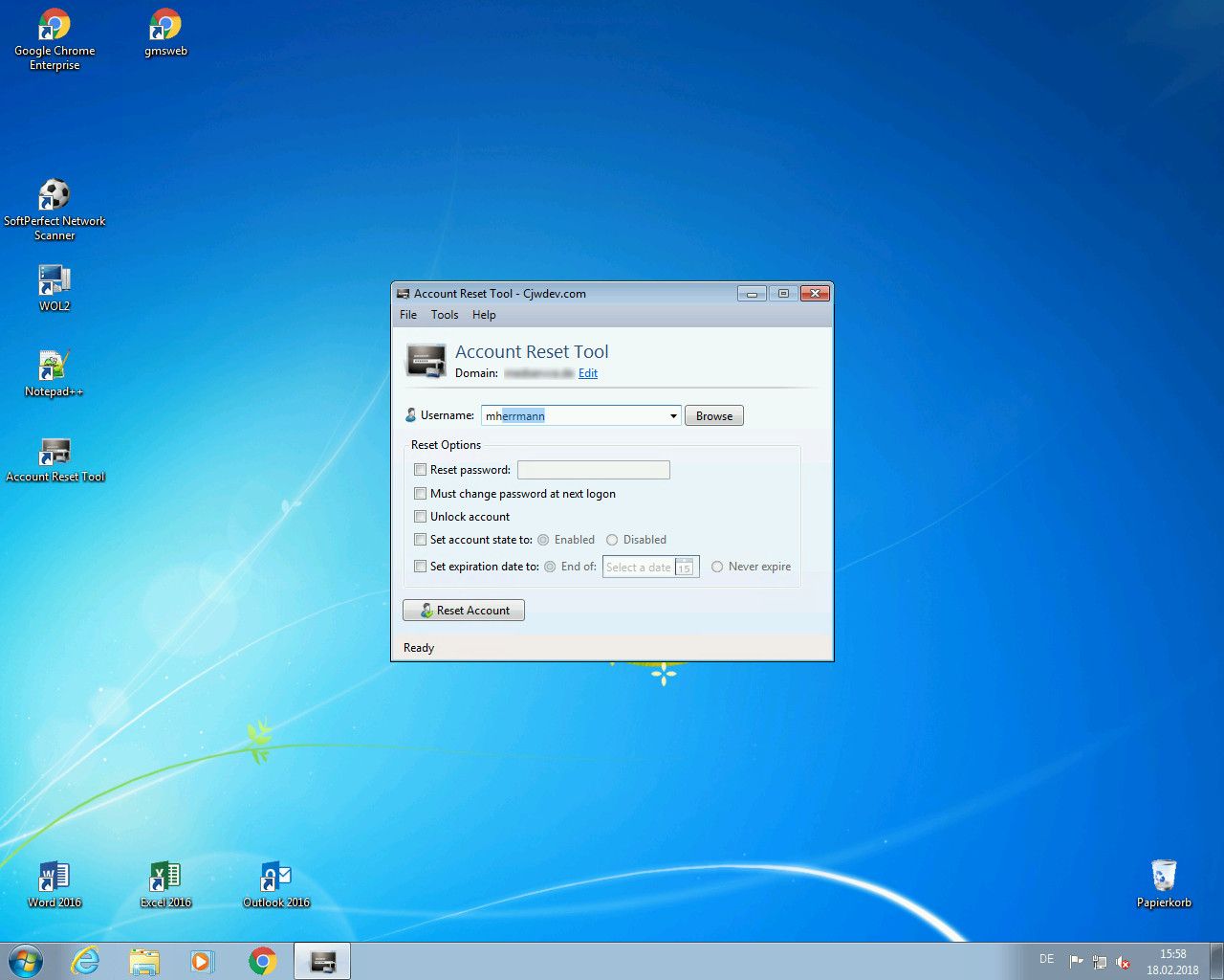 Hier zeige ich die Umsetzung in einer Active Directory Domain (Server 2016) in Kombination mit dem Account Reset Tool von cjwdev. Der Vorteil in dem Tool liegt an der einfachen Handhabung.