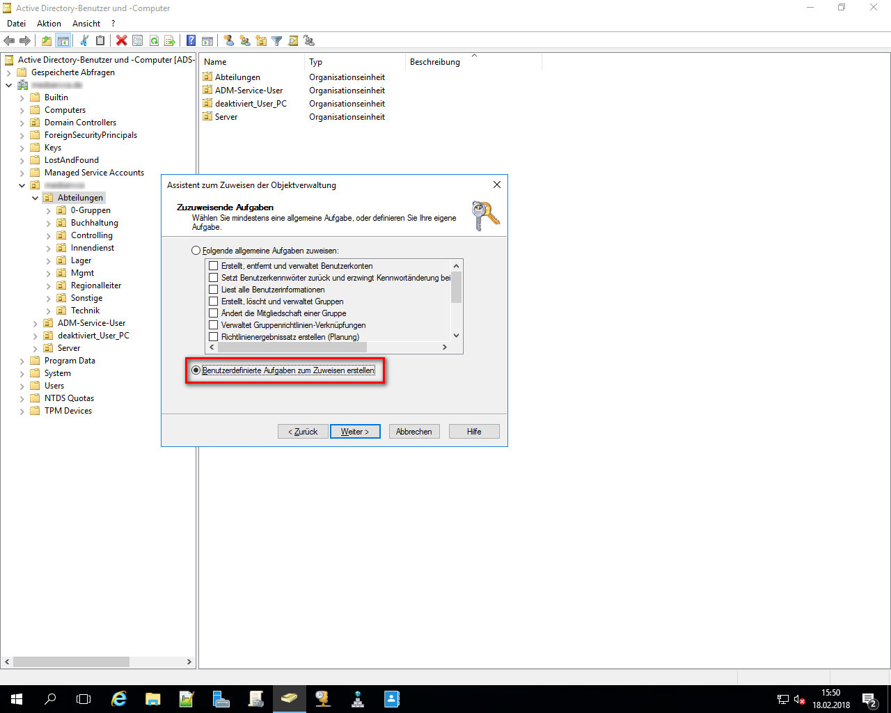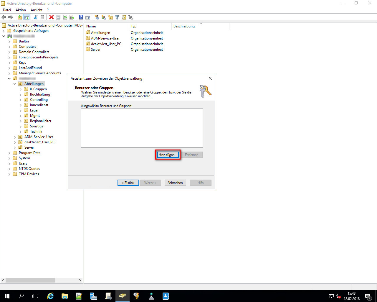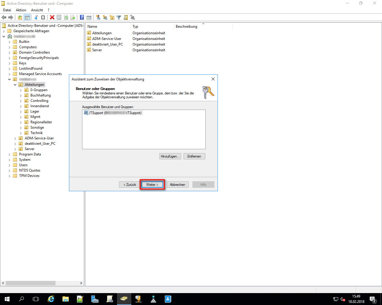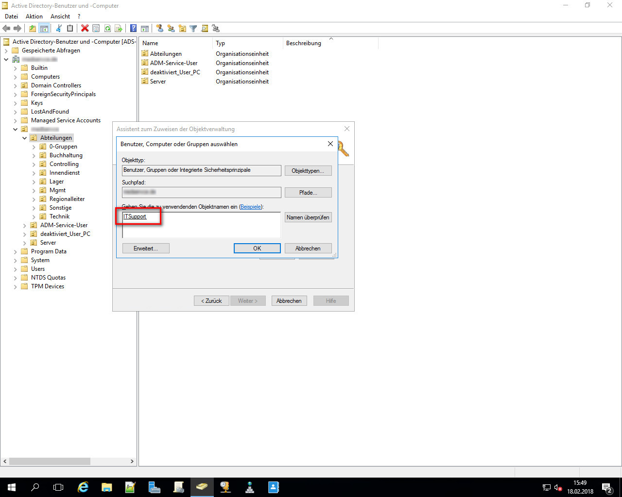 Ich habe eine Sicherheitsgruppe ITSupport erstellt. Über diese Gruppe wird die Berechtigung delegiert.