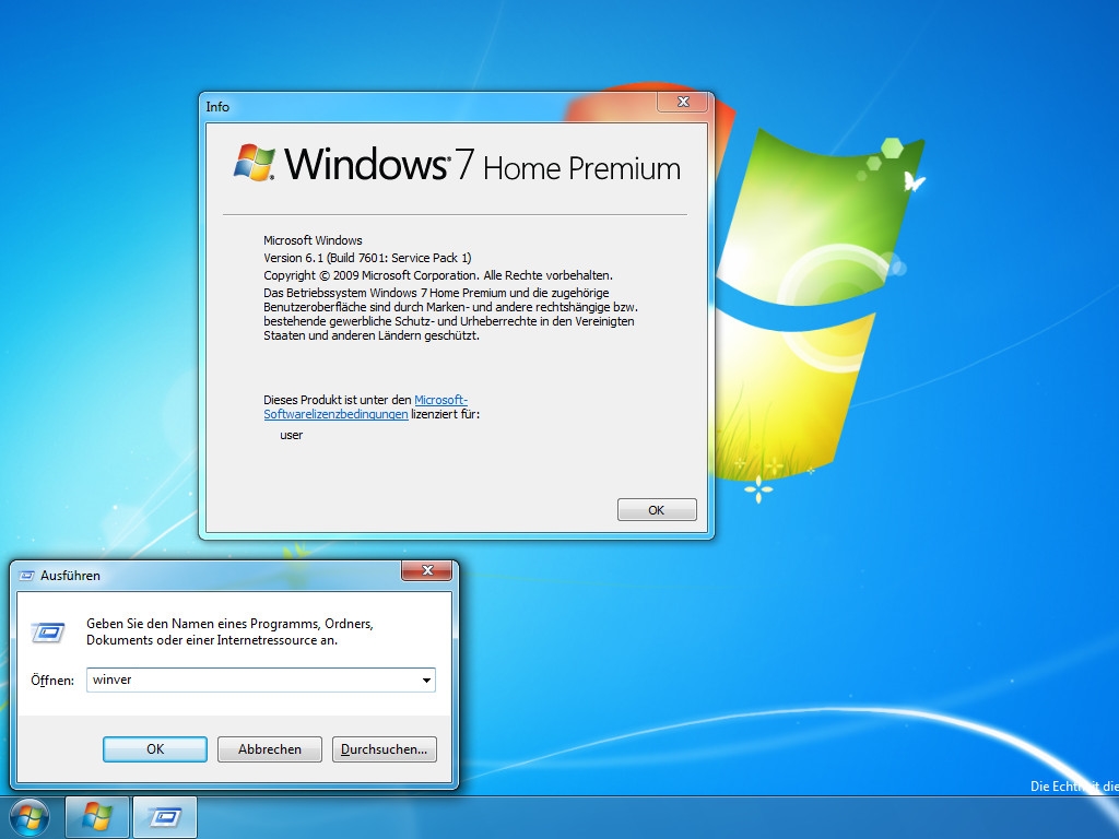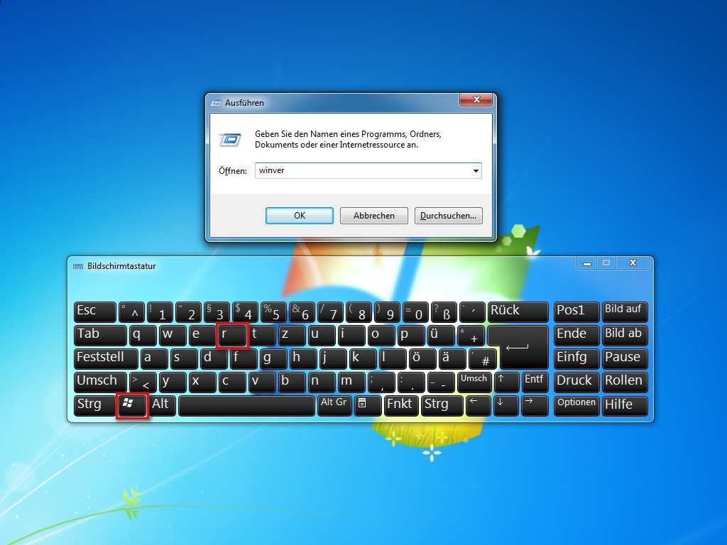 Mit der Tastenkombination [Windows] + [R] (Auführen-Dialog) lässt sich winver aufrufen.
