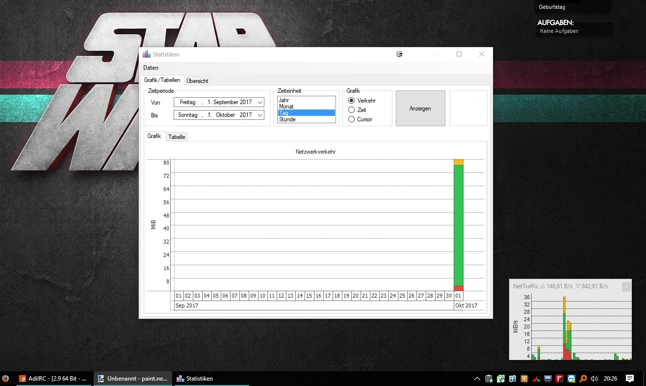 Mit NetTrafiic lässt sich eine beliebige Netzwerkschnittstelle überwachen und so der Traffic in Echtzeit anzeigen. Das Tool ist praktisch wenn man z.B. eine getaktete Verbindung überwachen muss.
